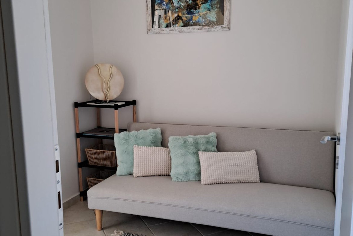 In a residential street approx. 10 minutes walk from Plaka square with tavernas, cafes, mini market and hardware store open all year round. Almyrida beach is 25 minutes walk or 5minutes drive. Chania airport is approx. 45min drive.