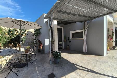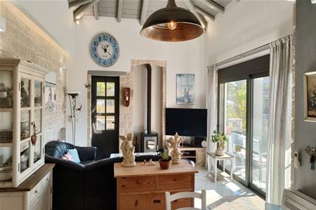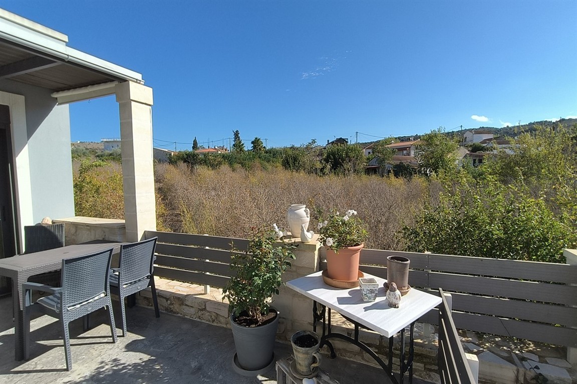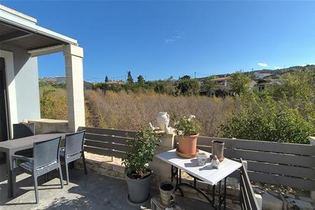 Set on a fully enclosed, landscaped plot, the property offers private gardens, terraces and parking, with views over the village and toward the White Mountains. The village has a year-round mini-market and pharmacy, while the lively town of Kalyves, with its shops, schools, and sandy beach, is just five minutes away.