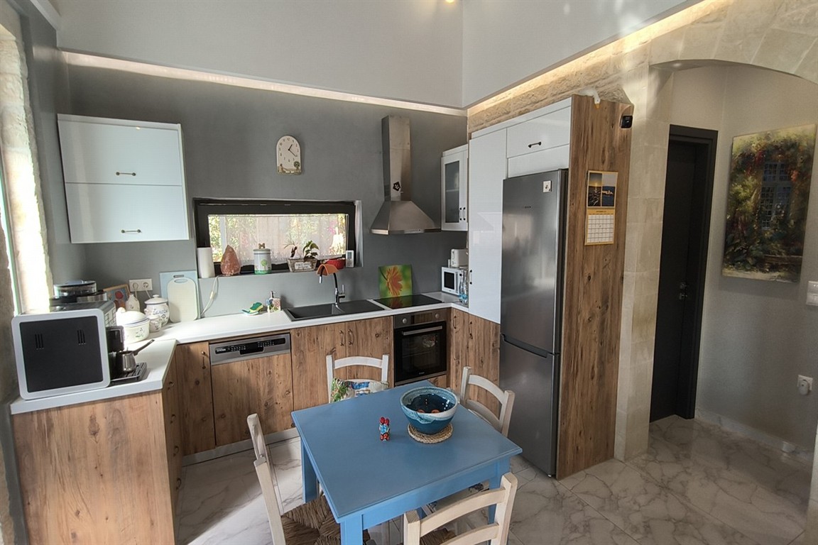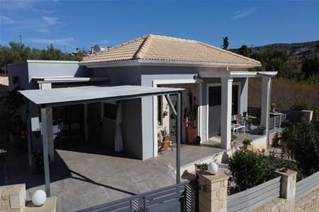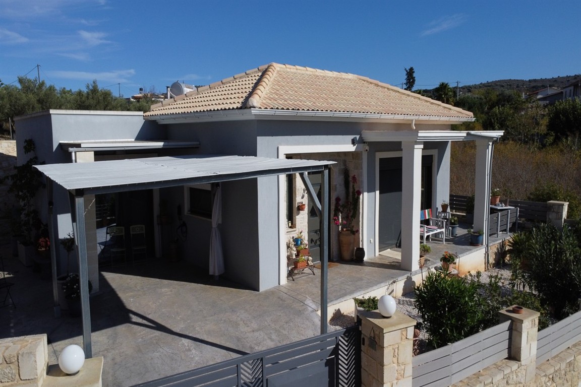 This newly built, single-story home combines modern design with natural materials, creating a warm and comfortable living environment, located in the traditional village of Armenoi, in the beautiful area of Apokoronas.