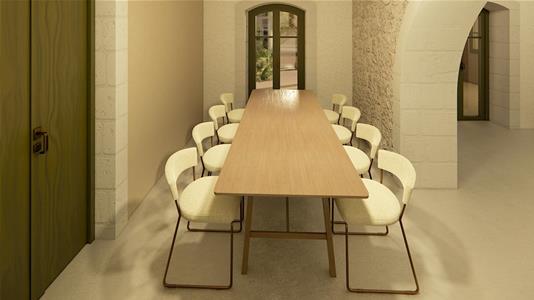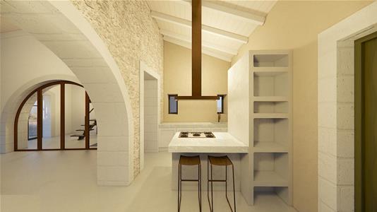 The design respects and highlights the character of the original stone construction while incorporating new volumes to create a harmonious blend of tradition and contemporary functionality.