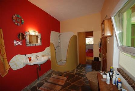 The lower level, part of the original stone house, has been beautifully restored into a spacious studio featuring a sauna for 2-3 people and a fitted wardrobe. A second room on this level functions as an art studio/workshop.