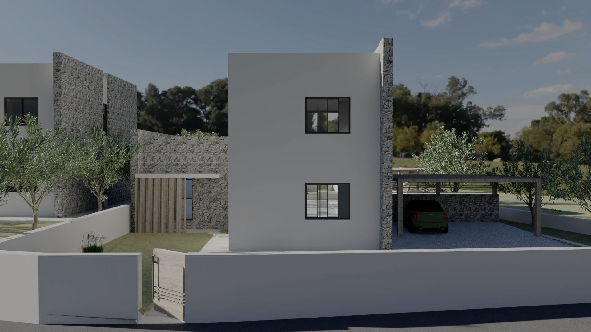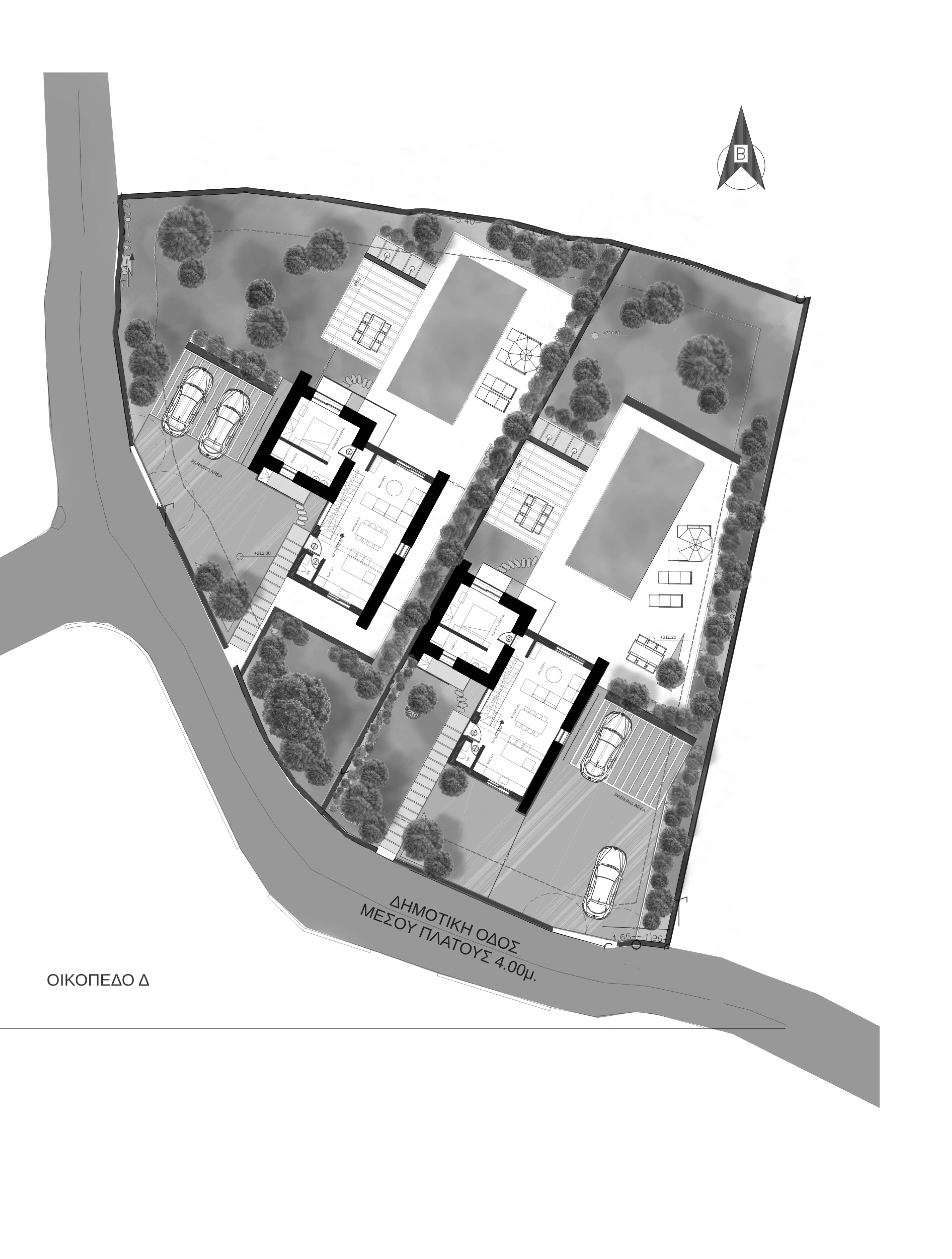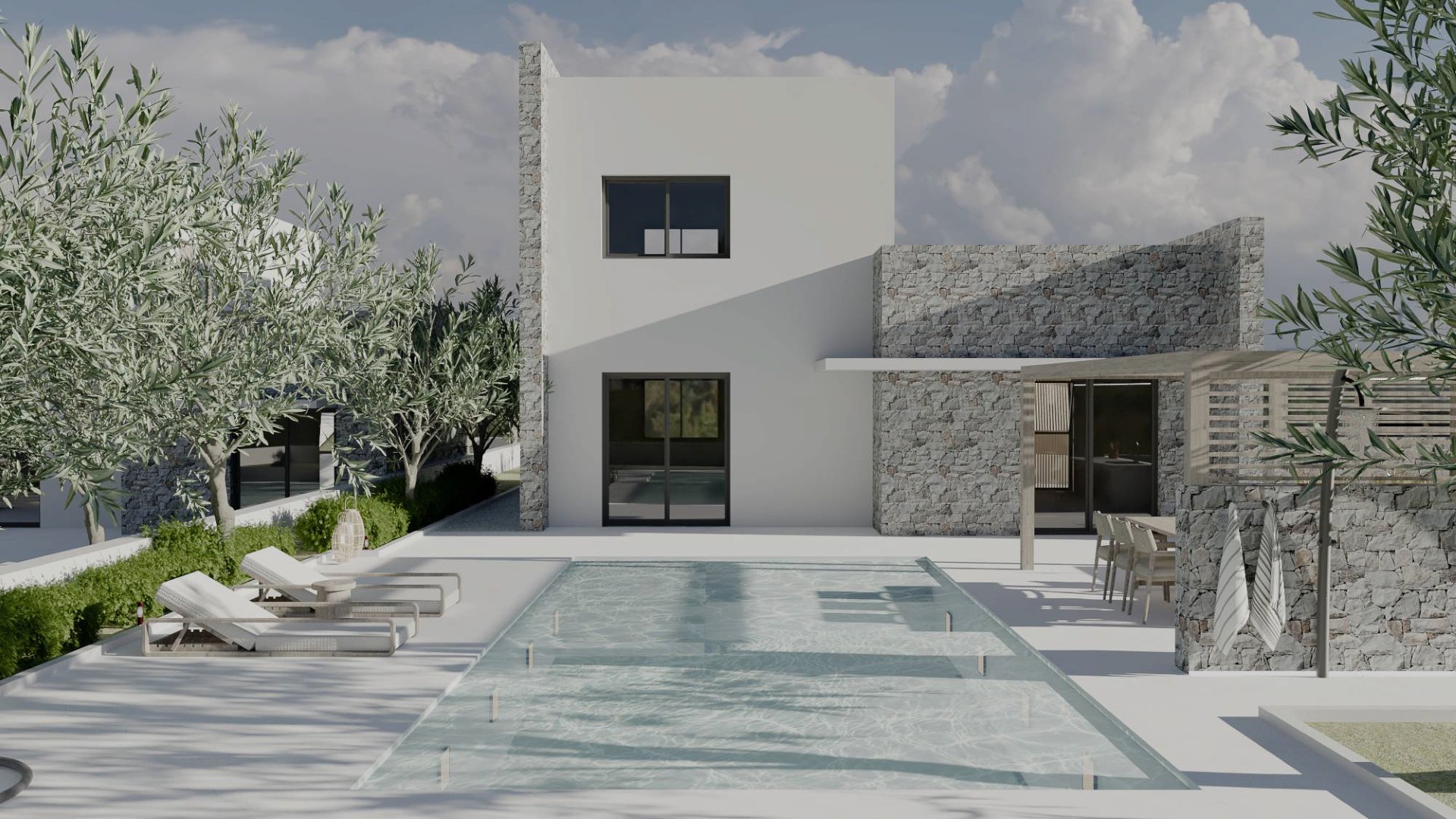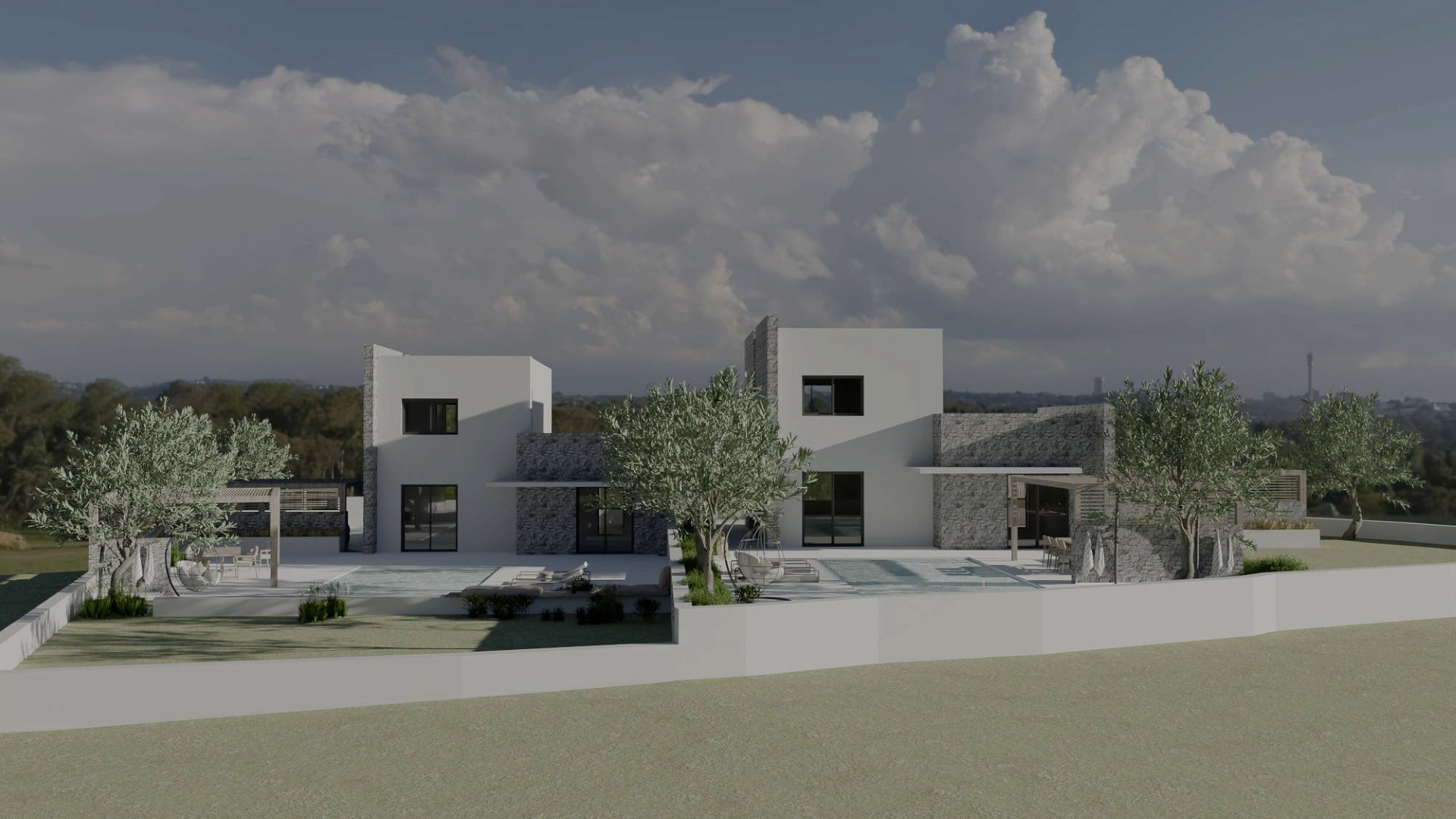 Op het perceel komen twee privévilla's, elk met hun eigen ruimtes, parkeergelegenheid, tuinen en zwembad. Eén daarvan is al verkocht.