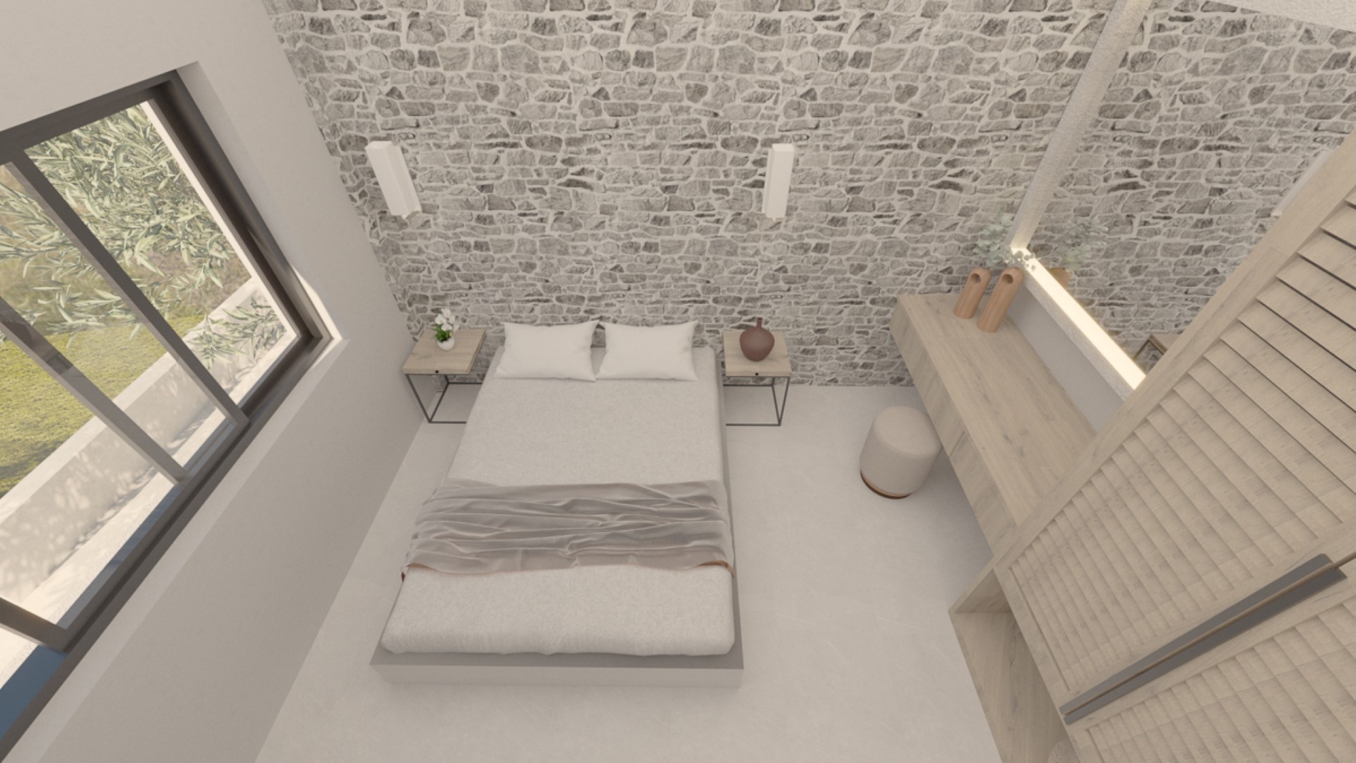 Een interne trap leidt naar de bovenverdieping en komt uit op een ruime hal, die toegang geeft tot de kamers op deze verdieping. Vanuit deze hal geeft een deur ook toegang tot een zeer ruim privébalkon! Op deze verdieping bevinden zich twee grote tweepersoonsslaapkamers en een gedeelde badkamer met een kamerbrede douche. Alle slaapkamers zijn voorzien van kledingkasten en een kleine kantoorruimte. Het huis heeft veel openingen, ramen en openslaande deuren, waardoor er veel natuurlijk licht binnenstroomt.