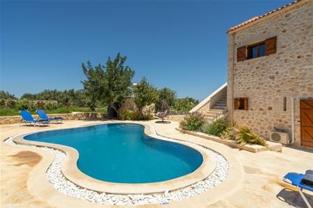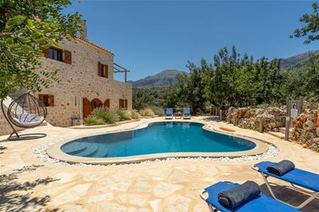Met een spectaculair uitzicht over de kloof naar de Witte Bergen en de zee richting Rethymnon, is dit nieuw gebouwde huis perfect ontworpen om vlekkeloos bij dit traditionele dorp en het landelijke landschap te passen. Het heeft een eigen uitgesproken karakter met prachtige privé-buitenruimtes en een privézwembad.